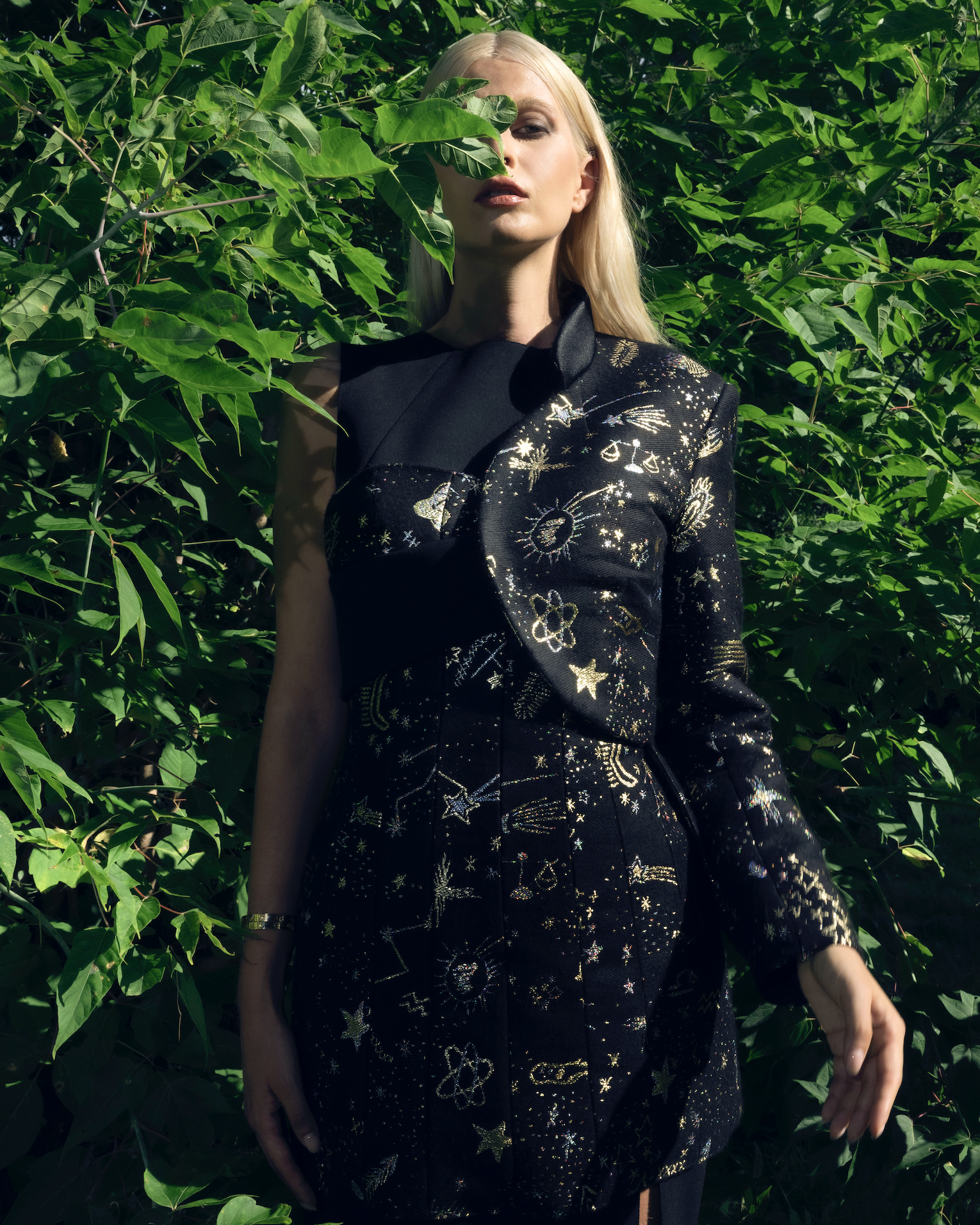 Inspired by Vincent Van Gogh‘s iconic painting, Starry Night collection captures the essence of modern women‘s strength as they navigate the evolving dynamics of femininity and power. Signature techniques like asymmetrical cutting and draping evoke dreams and transformative beauty, drawing inspiration from the enchantment of the night and nature.