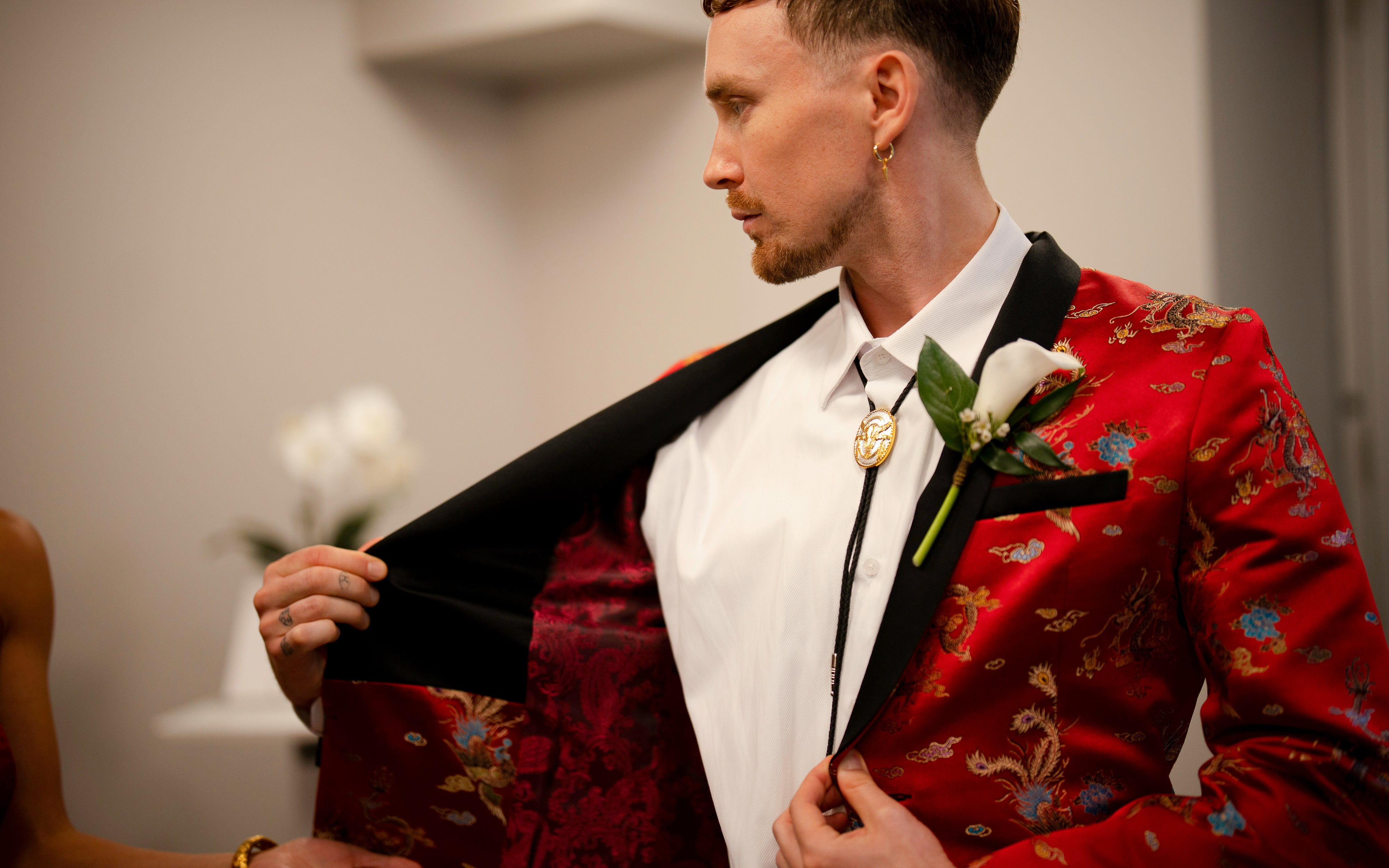 Elevate your evening wear with the Imperium Jacket, a statement piece that merges timeless craftsmanship with a bold modern twist. Crafted from premium silk and embroidered with an intricate dragon and phoenix motif—symbols of strength, renewal, and resilience—the jacket is both visually striking and culturally symbolic.