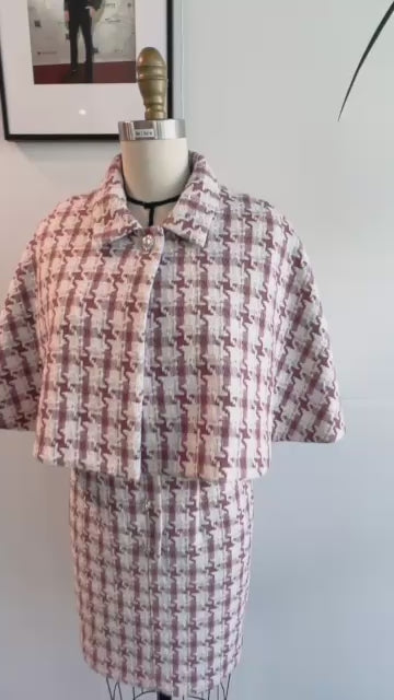 This ensemble is ideal for a variety of settings, from high-stakes business meetings to elegant social gatherings. It transitions effortlessly from daywear to evening wear, making it a versatile addition to any wardrobe. The cape adds a layer of flexibility, perfect for cooler weather or adding an extra touch of sophistication to an already stunning outfit.